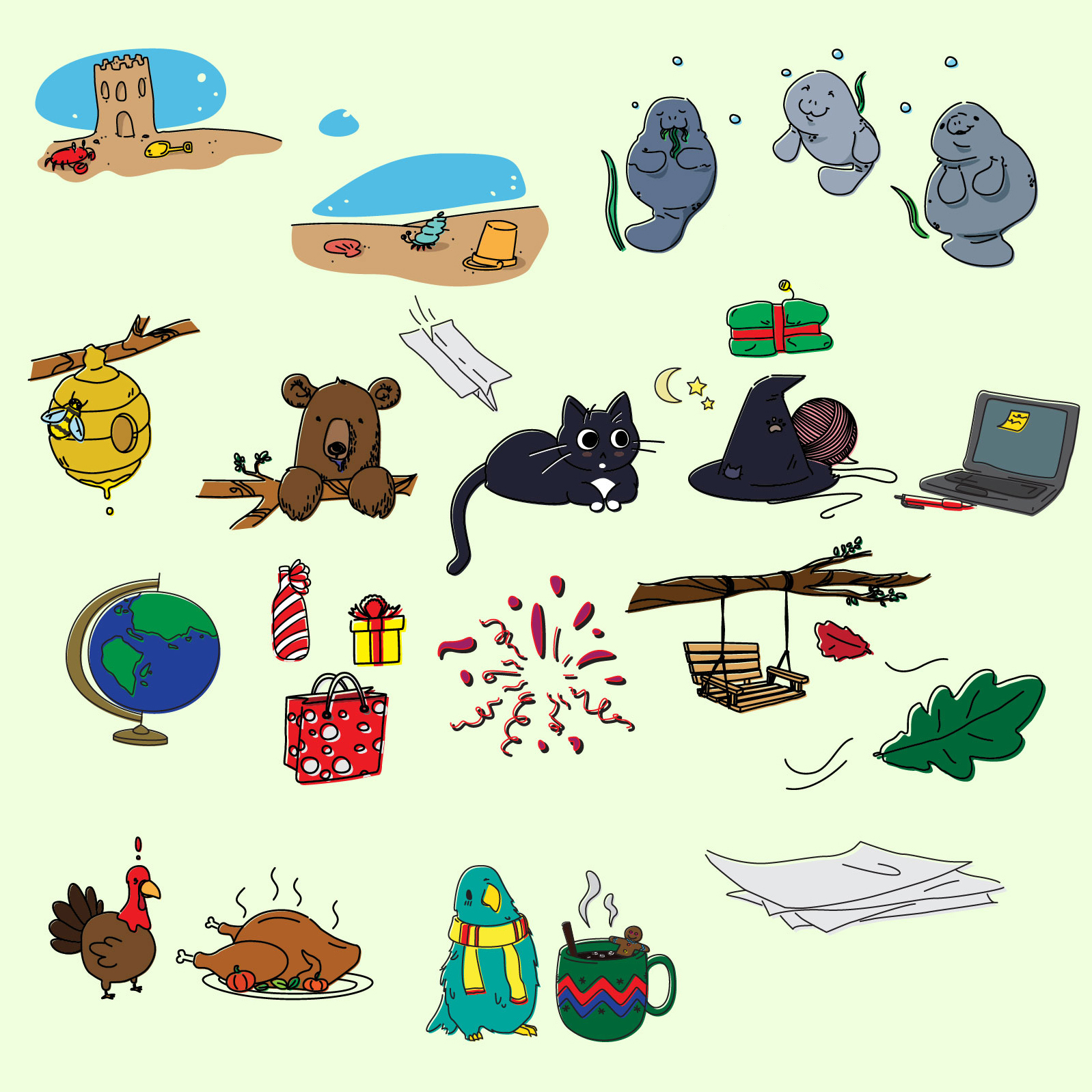 A selection of digital illustrations created for personal projects and clients, showcasing a range of styles