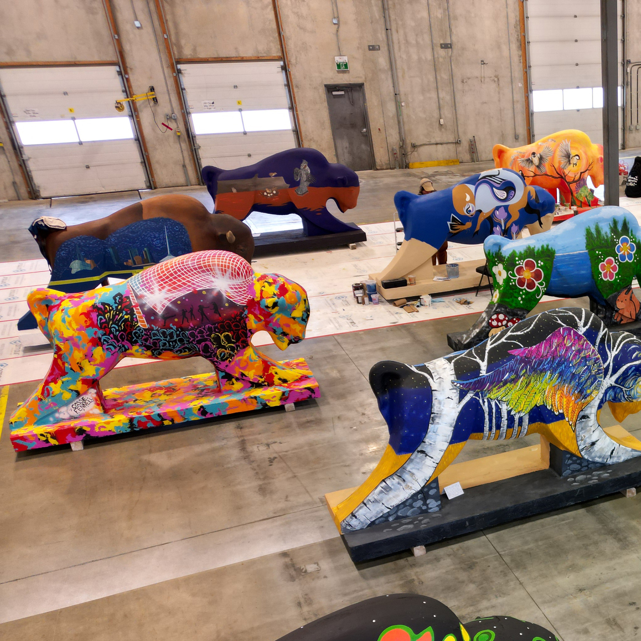 Bison Statues.